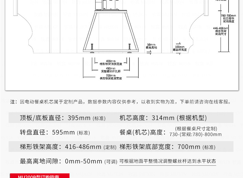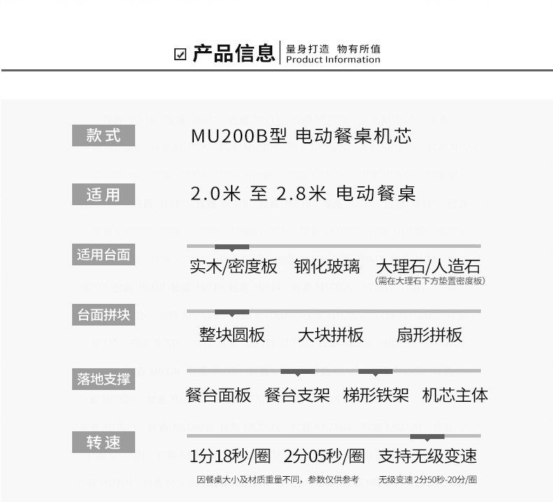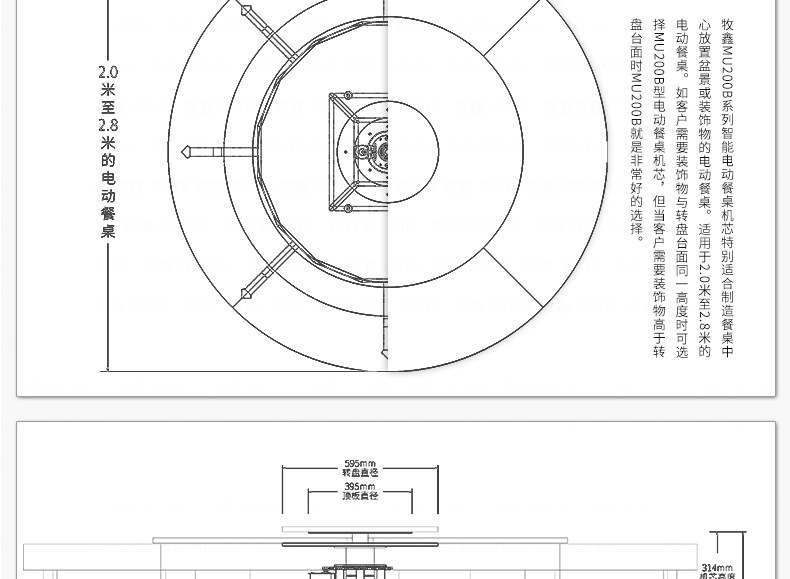 适用于2.0米至2.8米的电动餐桌(直径为1.0米至1.8米的转盘)