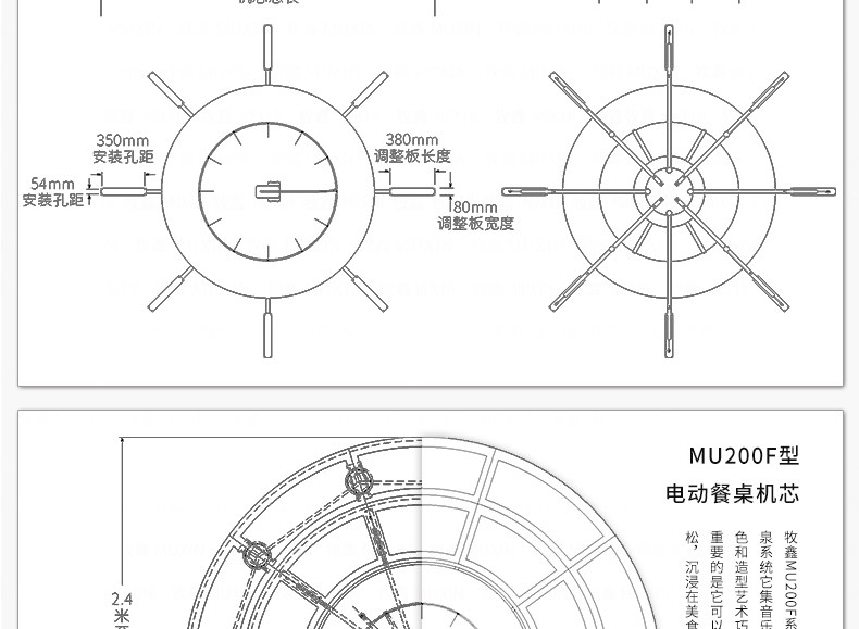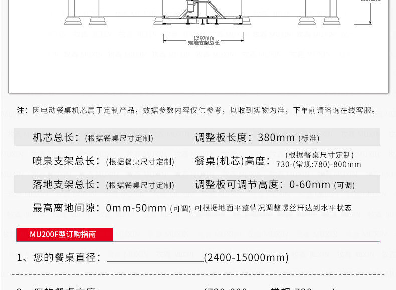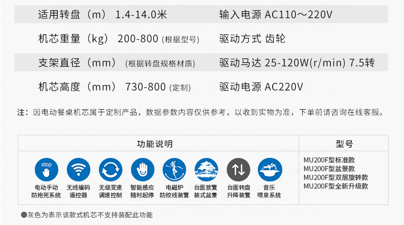 适用于2.4米至15米的电动餐桌(直径为1.4米至14米的转盘)