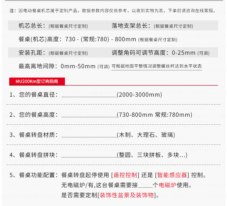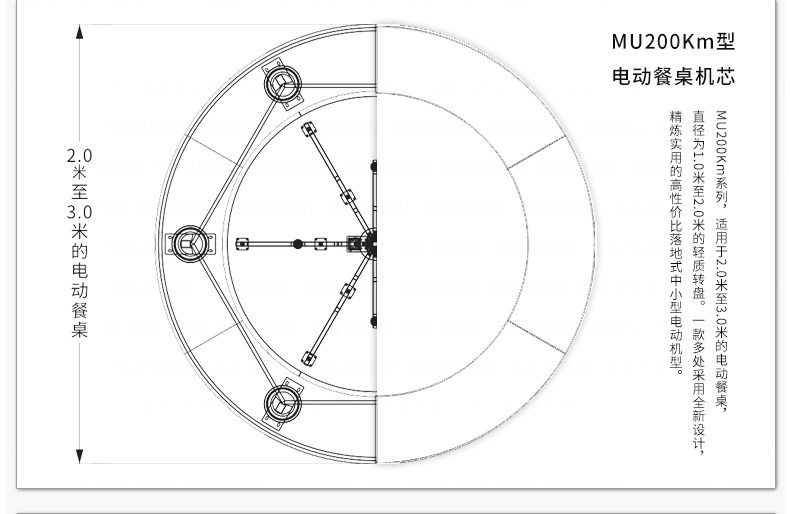 适用于2.0米至3.0米的电动餐桌(直径为1.0米至2.0米的转盘)