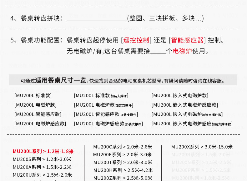 适用于1.2米至1.8米的电动餐桌(直径为0.5米至1.0米的转盘)