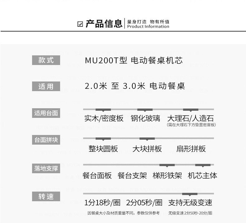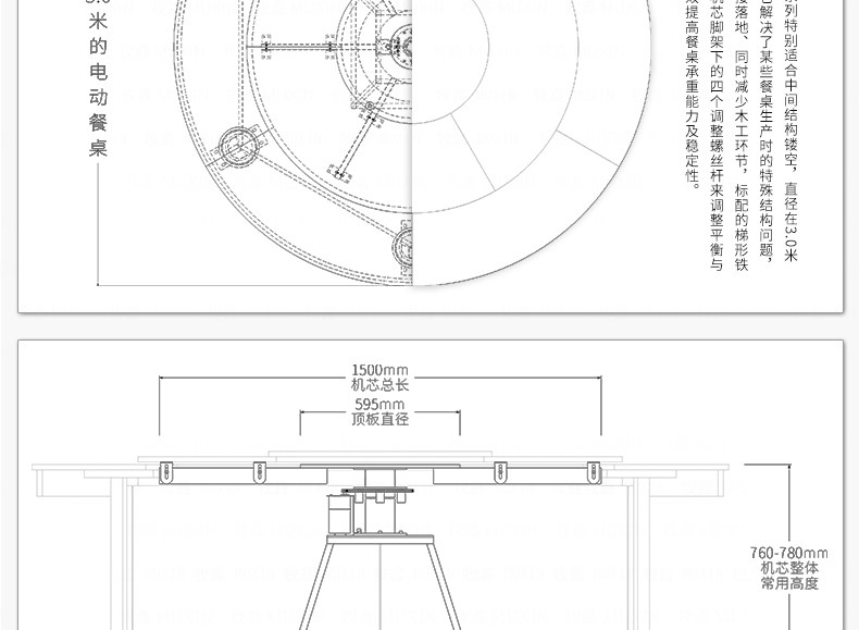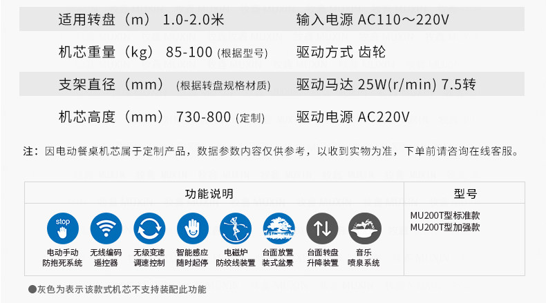 适用于1.7米至3.0米的电动餐桌(直径为0.7米至2.0米的转盘)